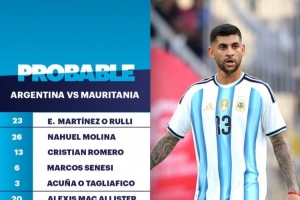 體育資訊3月27日訊 北京時間明天7點15分,阿根廷將在友誼賽中對陣毛里塔尼亞,TYC預測了阿根廷隊的首發(fā)陣容。