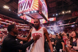 杜蘭特目前總得分距離賈巴爾還有6023分,距離馬龍還有4564分。
